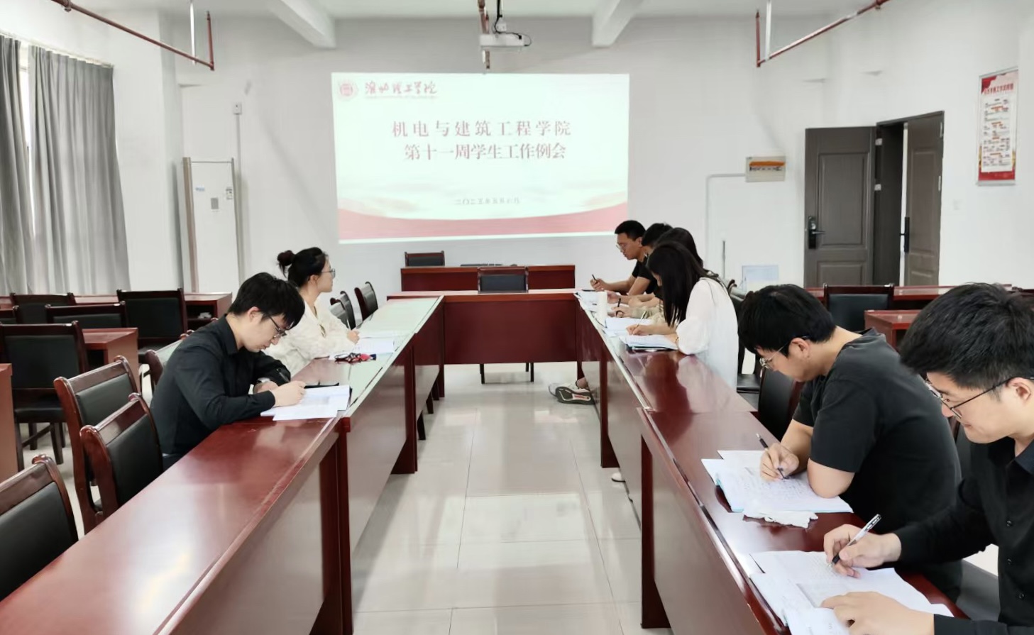 2025年5月6日下午,williamhill威廉希尔中文网站在行政楼214会议室召开第十一周学生工作例会。会议由学院党总支书记助理邓金鑫主持,团总支书记张亚飞及全体辅导员参会。