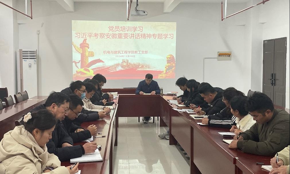 党总支书记张安宁同志带领教工支部全体党员学习习近平总书记《论教育》中的《在全国教育大会上的讲话》篇章;教工支部书记陈家宝同志带领学习习近平总书记在安徽考察时强调发挥多重国家发展战略叠加优势奋力谱写中国式现代化安徽篇章的重要讲话精神。