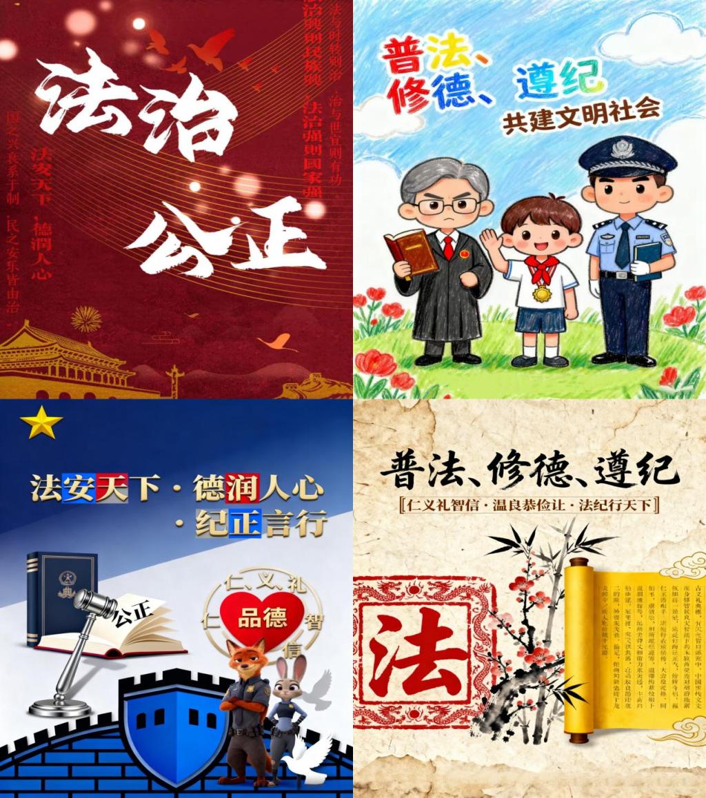 活动一经开展,便收获各班级学生的广泛关注与踊跃响应。同学们紧扣活动主题,充分发挥想象力与创造力,以微视频、海报、手抄报、文创设计等多元形式,将对法律权威、道德准则、纪律要求的理解与思考转化为生动作品。在创作中,大家或用镜头记录法治故事,或用画笔勾勒崇德场景,或用巧思设计守纪文创,既展现出扎实的艺术表达能力,又传递出深刻的思想内涵,让“普法、修德、遵纪”的理念跃然于作品之上。
