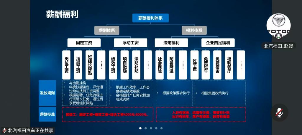 宣讲中,福田汽车HR介绍福田汽车实力:作为国内商用车领军企业,资产近1000亿元,设欧康智能柔性工厂(投资38亿),业务覆盖重卡、新能源等领域,本次招聘机加部精加工、设计部三电业务等岗位,本科岗含质检、生产管理,专科岗涉及总装、发动机装配,优先录用机电、新能源相关专业学生。
